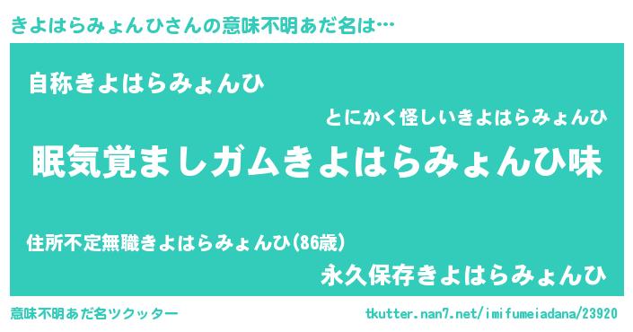| ヒーロー風カッコイイあだ名 | 『天空の使者きよはらみょんひ』 |