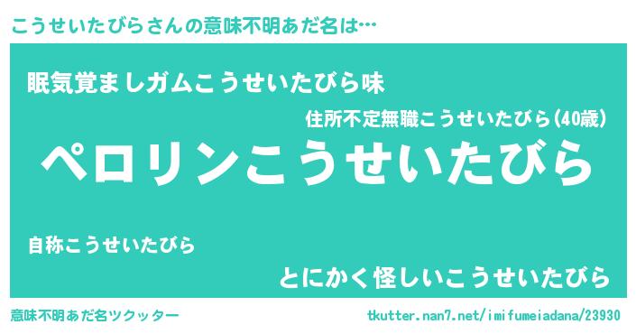 | ヒーロー風カッコイイあだ名 | 『スーパーコウセイタビラ』 |