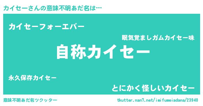 | ファンタジー風あだ名 | 『ゼカイトゥ』『エターナルカイセーー』 |