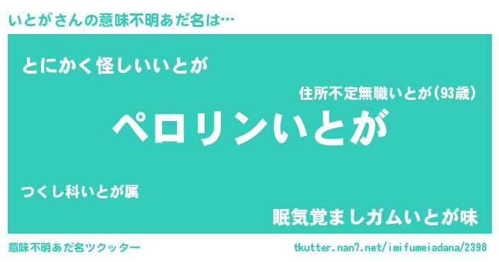 | 男性向けラノベタイトル風あだ名 | 『いとがの憂鬱』『はたらくいとがさま!』 |