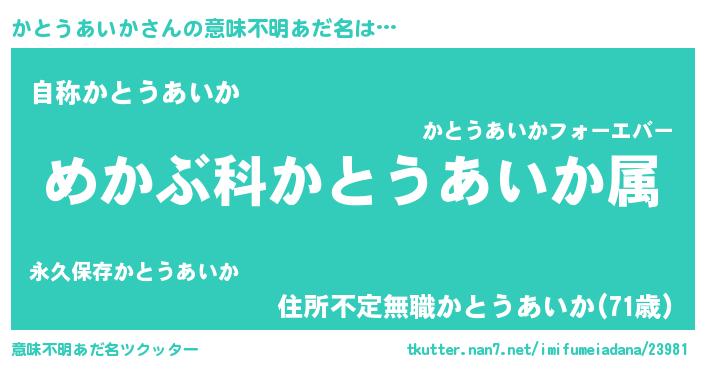 | 料理風あだ名 | 『かとうあいかごはん』 |