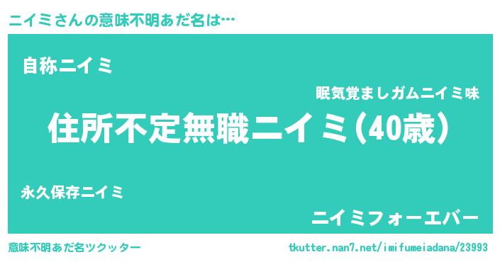 | 男性向けラノベタイトル風あだ名 | 『この素晴らしい世界にニイミを!』 |