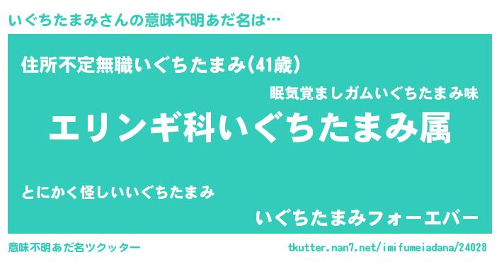 | 男性向けラノベタイトル風あだ名 | 『イグチタマミスレイヤー』 |