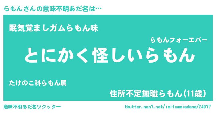 | 胡散臭い通販商品みたいなあだ名 | 『信頼と実績のサプリメント…その名も「らもん」』 |