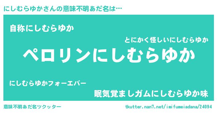 | ヒーロー風カッコイイあだ名 | 『スーパーニシムラユカ』『幻影騎士ニシ』 |