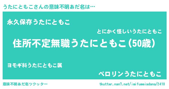 | 男性向けラノベタイトル風あだ名 | 『この素晴らしい世界にうたにともこを!』 |