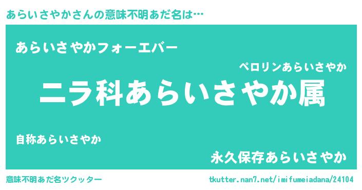 | 料理風あだ名 | 『あらいさやかとほうれんそうの和風グラタン』 |