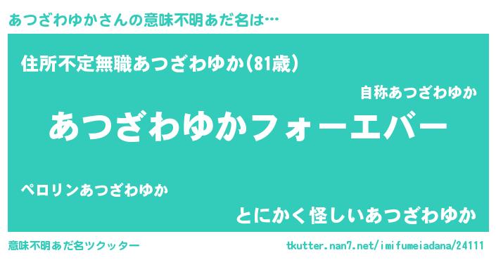 | ファンタジー風あだ名 | 『エターナルアツザワユカー』 |