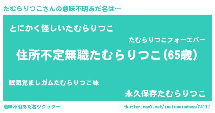 | 女子向けラノベタイトル風あだ名 | 『乙女ゲームの破滅フラグしかない悪役たむらりつこに転生してしまった…』 |
