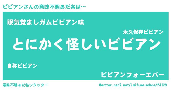 | ヒーロー風カッコイイあだ名 | 『魔戒騎士ビビ』『正義の使者ビビアン』 |