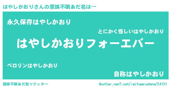 | 欧米人風あだ名 | 『はやしかおりクリステル』 |