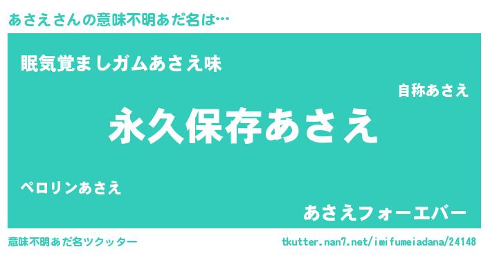 | 胡散臭い通販商品みたいなあだ名 | 『来世でも幸せになれる健康食品…その名も「あさえ」』 |