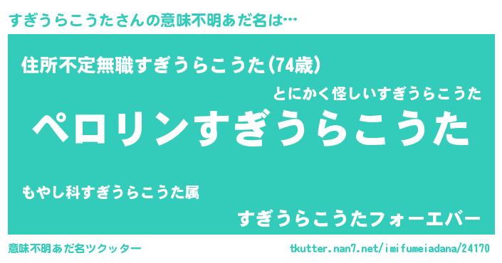 | 胡散臭い通販商品みたいなあだ名 | 『モテモテ間違いなし水晶球…その名も「すぎうらこうた」』 |