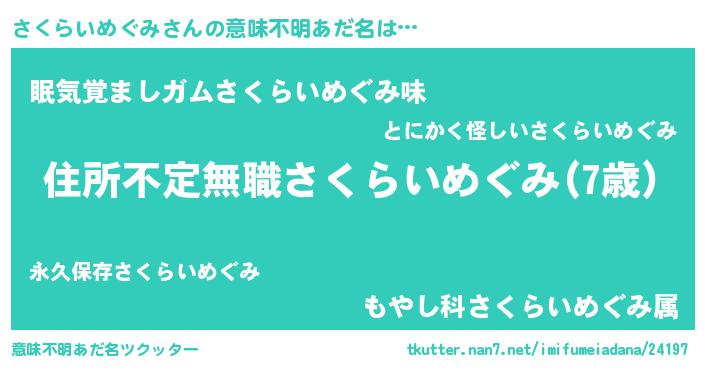 | ヘコむあだ名 | 『さくを』『さくらいめぐみ(笑)』 |