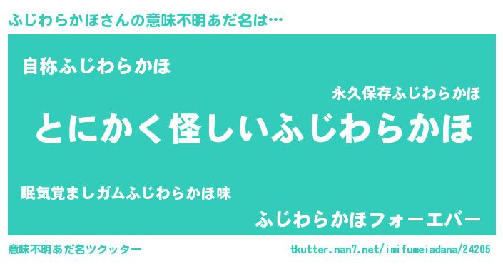 | 欧米人風あだ名 | 『ウサインふじわらかほ』 |