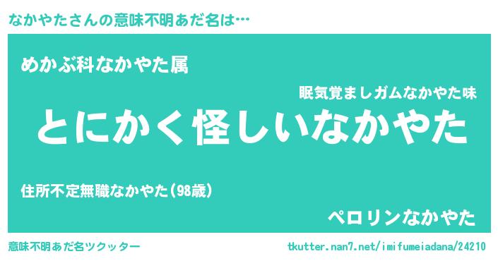 | 男性向けラノベタイトル風あだ名 | 『なかやたの嫁は女の子じゃないと思った?』 |