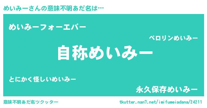 | 男性向けラノベタイトル風あだ名 | 『Re:めいみーから始める異世界生活』 |