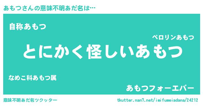 | 女子向けラノベタイトル風あだ名 | 『あもつは平凡を望む』『闇のあもつ』 |