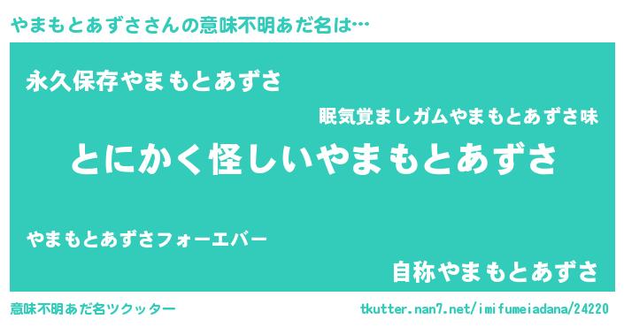 | ポケモン風あだ名 | 『ヒヤマモトアズサ』『ゼニヤマ』 |