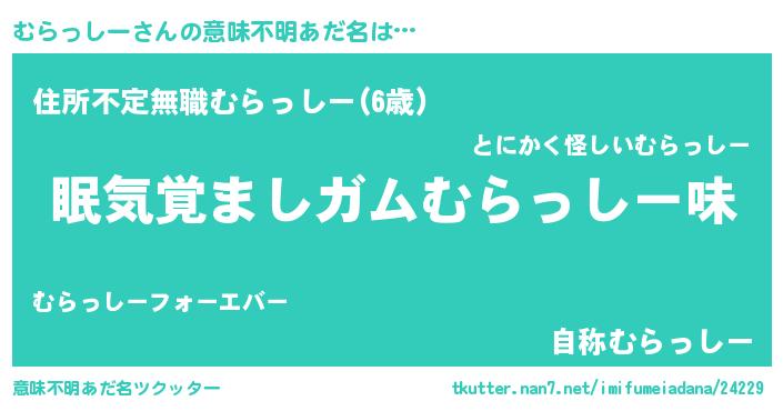 | 男性向けラノベタイトル風あだ名 | 『おまえをオタクにしてやるから、俺をむらっしーにしてくれ! 』 |
