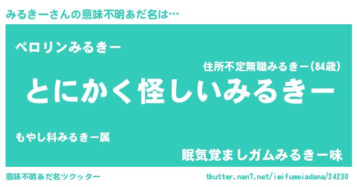 | 自動車の名前っぽいあだ名 | 『ミルトルパン』『プリミル』『ミンR』 |