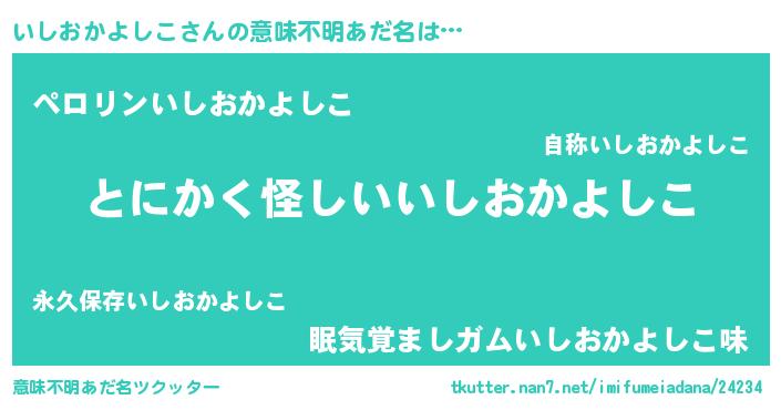 | ポケモン風あだ名 | 『ヒイシオカヨシコ』『イシチュウ』 |