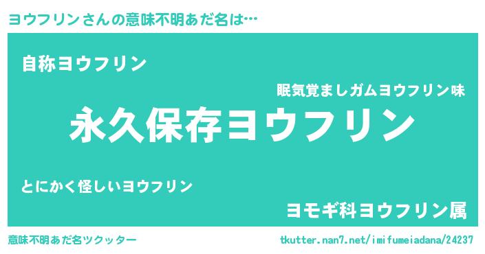| 男性向けラノベタイトル風あだ名 | 『ヨウフリンに滅ぼされるだけの簡単なお仕事です』 |