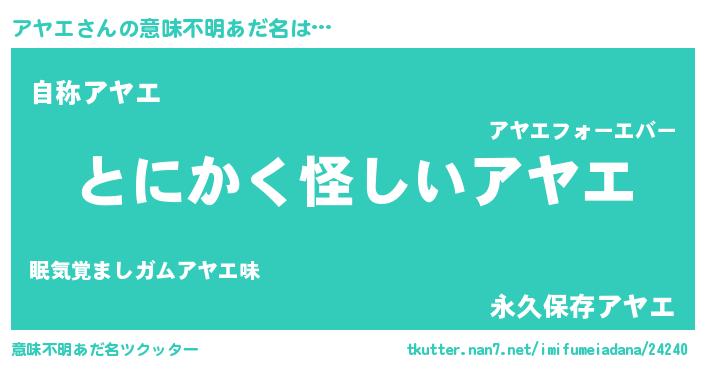 | ヒーロー風カッコイイあだ名 | 『幻影騎士アヤ』『最強戦士アヤエ』 |