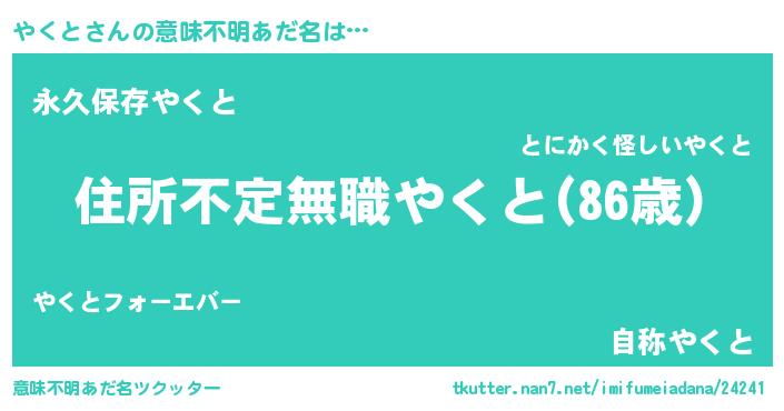 | ヘコむあだ名 | 『やくと(震え声)』『やくお』『牛乳』 |