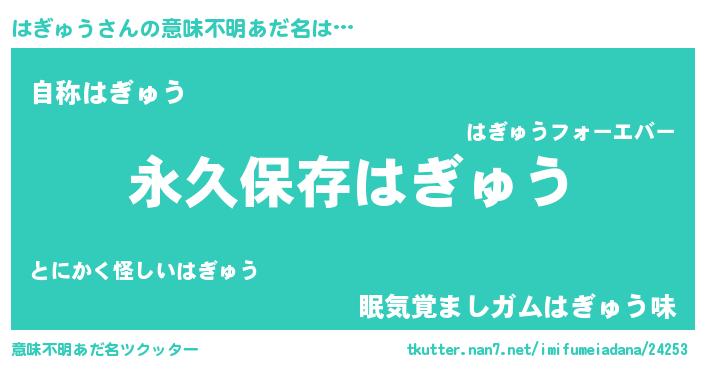 | ヘコむあだ名 | 『はぎゅう(震え声)』『なまこ酢』 |