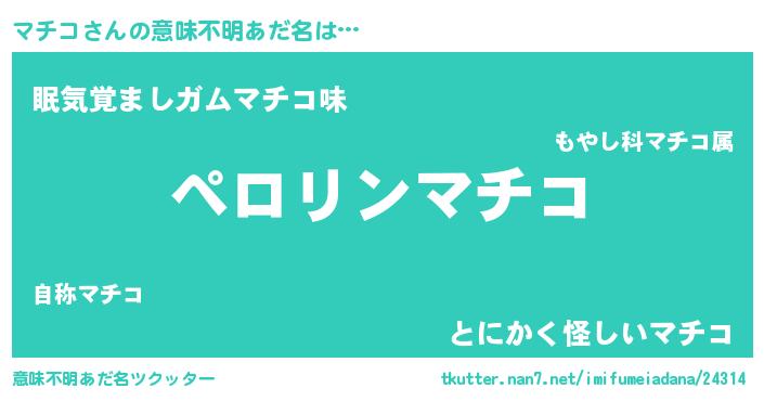 | ピコ太郎風あだ名 | 『マコ太郎』『ママ太郎』『マチ史郎』 |