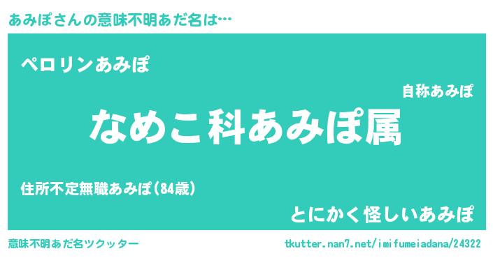 | 男性向けラノベタイトル風あだ名 | 『転生したらあみぽだった件』 |