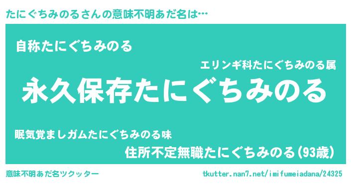 | 女子向けラノベタイトル風あだ名 | 『異世界で失敗しない100のたにぐちみのる』 |