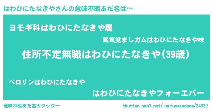 | ヘコむあだ名 | 『酢こんぶ』『はわにー』『はわを』 |