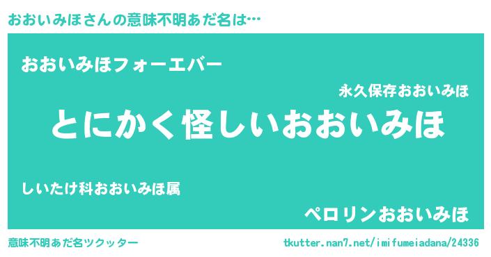 | 女子向けラノベタイトル風あだ名 | 『おおいみほは平凡を望む』 |