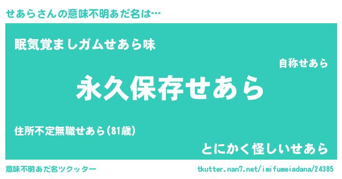 | ヒーロー風カッコイイあだ名 | 『ネオセアラ』『天空の使者せあら』 |