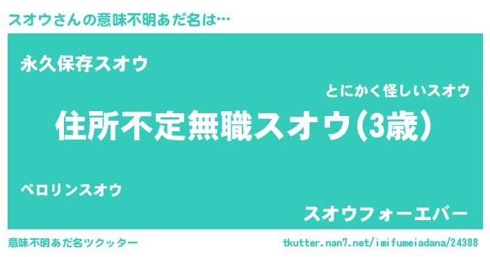 | 男性向けラノベタイトル風あだ名 | 『この素晴らしい世界にスオウを!』 |
