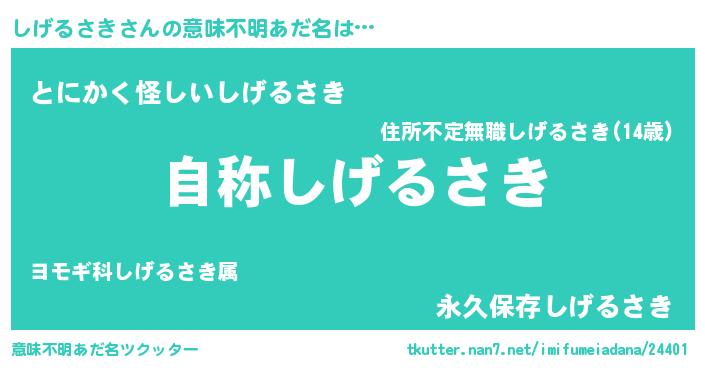 | ヘコむあだ名 | 『しげっ子』『しげるさき(遠い目)』 |