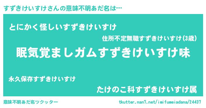 | ポケモン風あだ名 | 『スックウザ』『ヒスズキケイスケ』 |