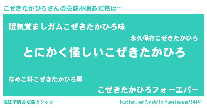 | 欧米人風あだ名 | 『こぜきたかひろ・ステッグマイヤー』 |