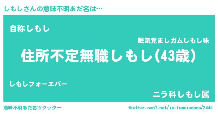 | 男性向けラノベタイトル風あだ名 | 『この素晴らしい世界にしもしを!』 |