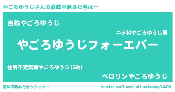 | 欧米人風あだ名 | 『やごろゆうじ・ステッグマイヤー』 |