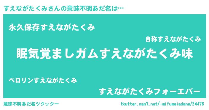 | ヘコむあだ名 | 『すえながたくみ(笑)』『豆乳』 |