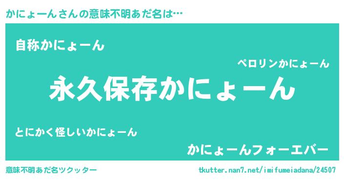 | 男性向けラノベタイトル風あだ名 | 『かにょーんという概念が存在しない退屈な世界 』 |