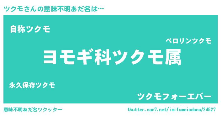 | 欧米人風あだ名 | 『トリンドルツクモ』『ツクモクリステル』 |
