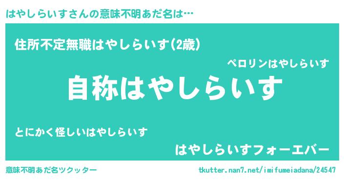 | 欧米人風あだ名 | 『はやしらいす・ステッグマイヤー』 |