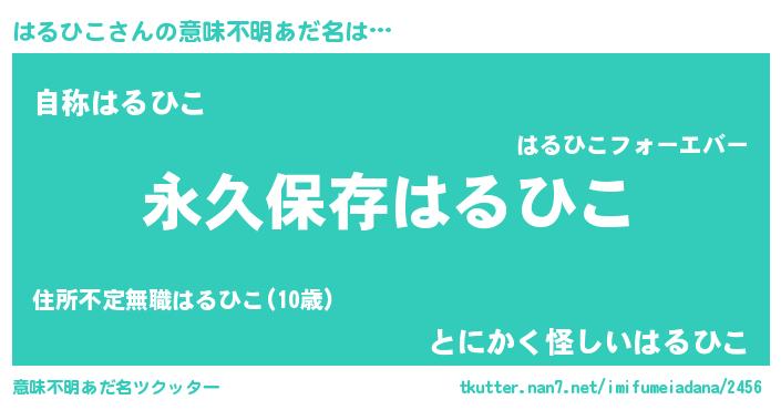 | 男性向けラノベタイトル風あだ名 | 『はるひこという概念が存在しない退屈な世界 』 |