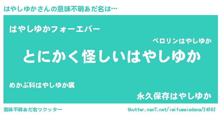 | ポケモン風あだ名 | 『ヒハヤシユカ』『ハヤシダネ』 |