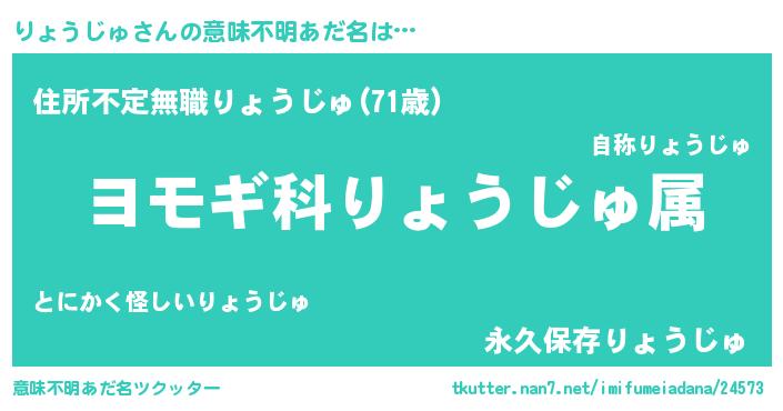 | 男性向けラノベタイトル風あだ名 | 『りょうじゅに滅ぼされるだけの簡単なお仕事です』 |