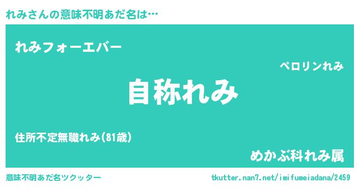 | 男性向けラノベタイトル風あだ名 | 『魔法科高校のれみ』『レミスレイヤー』 |